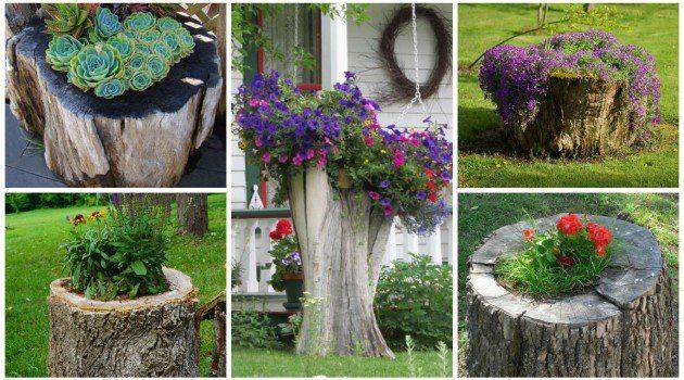 O altă idee inedită de aranjare a florilor în grădină ar fi în buşteni sau butuci. Uită de clasicele ghivece şi foloseşte buşteni scobiţi pentru plantarea florilor. Alege flori care să aibă culori vibrante pentru a contrasta cu lemnul.