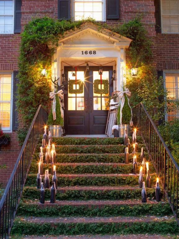 Ca să amintești de atmosfera Polului Nord pe o sfoară agață simetric felinare. Această ghirlandă originală ar trebui să-ți încadreze tocul ușii de la intrare, pe lângă tradiționala coroniță, pe care de asemenea am împrumutat-o de la americani.