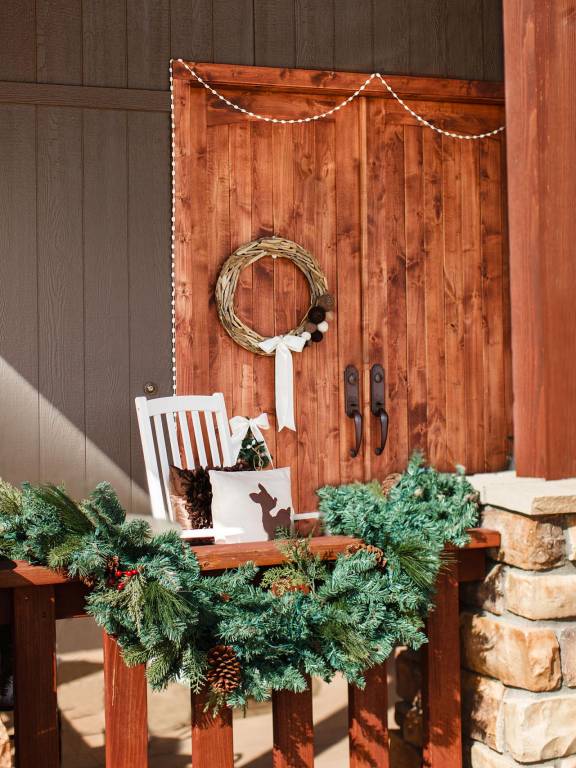 Ca să amintești de atmosfera Polului Nord pe o sfoară agață simetric felinare. Această ghirlandă originală ar trebui să-ți încadreze tocul ușii de la intrare, pe lângă tradiționala coroniță, pe care de asemenea am împrumutat-o de la americani.