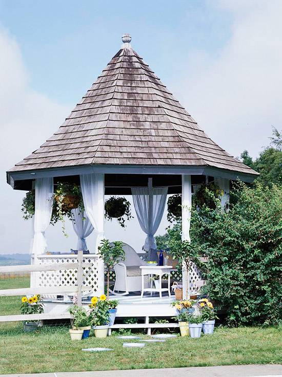 Însă până te decizi unde să-l instalezi, ce formă va avea și ce materiale vei folosi, eu am strâns câteva modele, foarte atrăgătoare, ale căror rol este să te inspire, să te facă să te hotărăști mai ușor că foișorul de grădină este ceea ce-ți lipsește din curtea casei tale.
