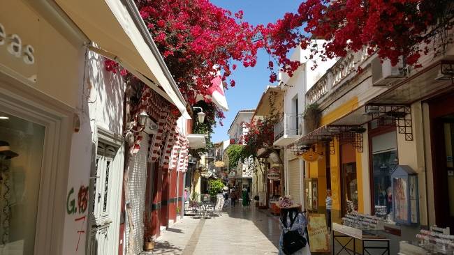 Oriunde îţi arunci privirea, vei vedea cum arbuştii de bougainvillea completează peisajul: de la balcoanele caselor, până la tradiţionalele taverne de la colţ de stradă.