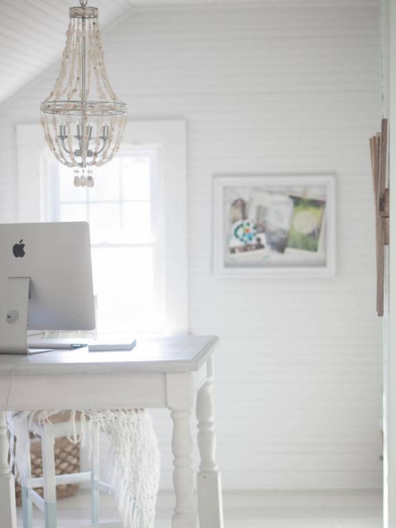 5. Nu înghesui foarte multe obiecte pe masa de lucru. Mai repede instalează niște corpuri de iluminat care să atârne din tavan, iar fotografiile dragi prinde-le pe perete. La fel poți proceda și în cazul corpurilor de iluminat cu picior, decât să-ți ocupe centimetrii prețioși din pardoseală, mai bine folosește aplice sau lustre.