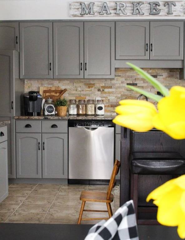 Pentru ca această bucătărie să fie renovată complet, până a ajuns la un rezultat mulțumitor pentru beneficiari, au fost nevoie de vreo patru ani. A debutat cu alegerea culori, două nuanțe de gri, pentru ca mai apoi să fie schimbate câteva dulapuri, blatul insulei, linoleumul de pe jos cu piatră naturală, bateriile și chiuveta, corpurile de iluminat și nu în ultimul rând renunțarea la un mic perete despărțitor. Toate aceste etape au avut un scop precis, de a scoate în evidență camera cu cel mai mult suflet din întreaga locuință, de a obține o atmosferă unitară, fluidă, dacă vreți. Eu zic ca așteptarea a meritat. Voi ce părere aveți?