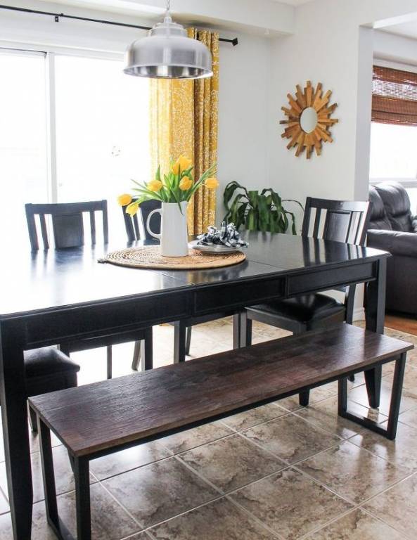 14 - scaune clasice si bncuta industriala in diningul noii bucatarii