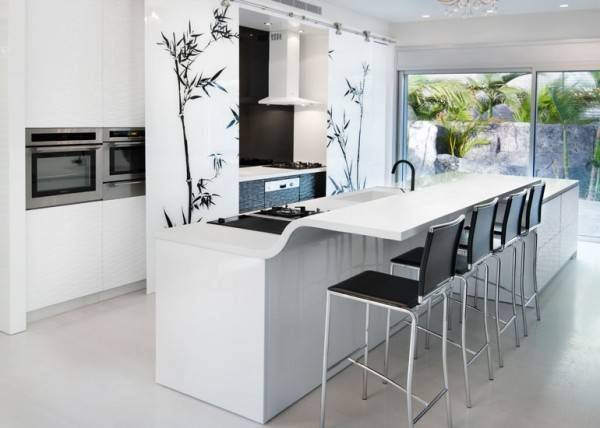 Dacă doriți o bucătărie modernă este bine să mergeți pe o structurare a obiectelor de mobilier și a blaturilor pe o formă asemănătoare literei L. Astfel veți avea un spațiu extins pentru tocat, gătit, sau alte activități culinare, un bar chic pentru a socializa cu prietenii și un loc elegant în care puteți servi micul dejun sau gustări savuroase.