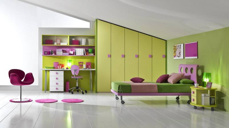 Pentru un aspect viu şi antrenant al camerei putem alege un mobilier în culori vesele, renunţând totuşi la desenele de pe pereţi.  De acum vom personaliza pereţii cu fişe pline de litere şi cifre sau  cu tabla înmulţirii şi formule matematice.