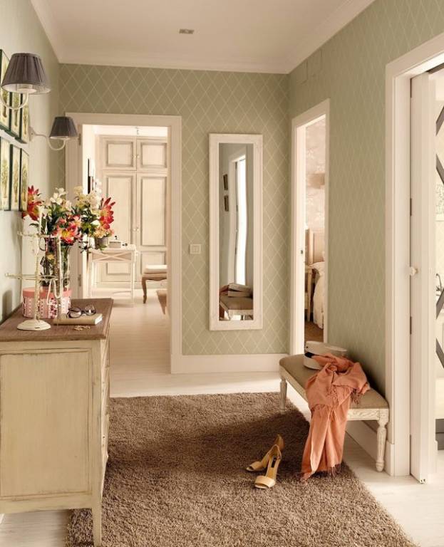 Holul decorat cu accesorii elegante în culori de bej, va face ca intrarea în casă să fie una specială. Mobilierul din hol trebuie să fie discret (se poate rezuma la două măsuţe cu diferite întrebuinţări, una având însă o oglindă generoasă). Nu trebuie omise nici suporturile de haine şi umbrele. Iluminarea perfectă este cea naturală, folosindu-se de ferestre largi, dar şi de corpuri de iluminat elegante.