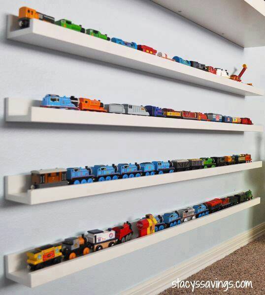 Pune jucăriile frecvent utilizate pe rafturile joase. Jucăriile cu care cel mic se joacă cel mai mult, ar trebui puse pe rafturile la care copilul ajunge cel mai bine. Astfel, nu riști ca cel mic să de-a jos toate celelalte jucăriile pentru a-și lua un singur tractoraș.