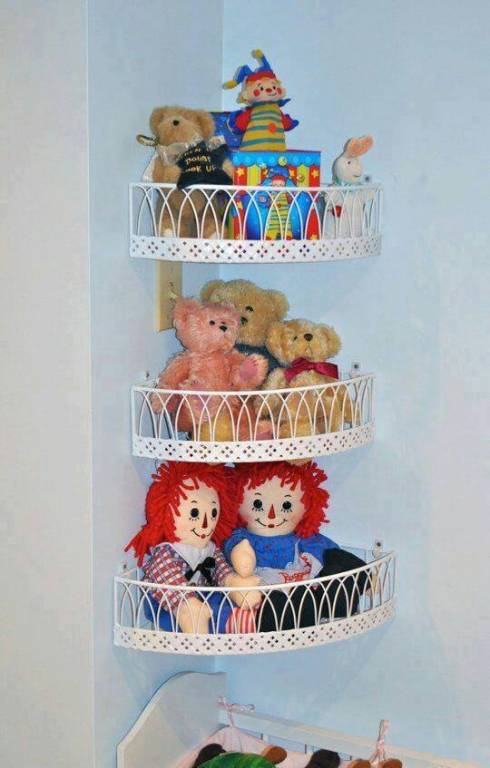 Pune rafturi în colțurile camerei. Există acum pe piață tot felul de rafturi atrăgătoare cu un design special pentru copii, care pot fi plasate în colțurile camerei și pe care pot fi așezate jucării, astfel încât să nu stea împrăștiate pe jos.