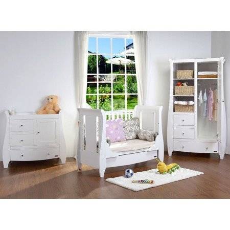 Dacă v-am convins și v-ați hotărât să amenajați dormitorul bebelușului în nuanțe de alb, vă propun să aruncați o privire asupra setului de mobilier alb Katie White, de la Tutti Bambini.
