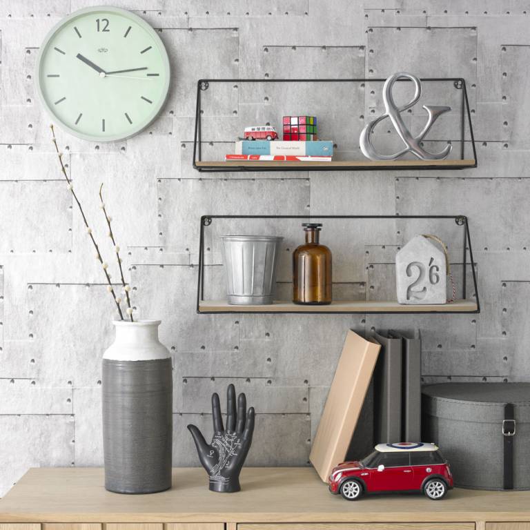 Stilul rustic industrial se apropie cel mai mult de stilul scandinav. Unele elemente sunt comune. Dar fanii acestui tip de design folosesc mult fier şi unele obiecte parcă sunt aduse direct din halele industriale, de unde şi numele acestui stil. Canapeaua poate fi una obişnuită, important este ce găsim în jur. Un tapet care imită efectul de metal, şi o masă de tip industrial poate oferi stilul dorit. Adăugaţi multe elemente geometrice pentru a oferi o vibraţie aparte camerei. Folosiţi cutii de depozitare în care pot fi ascunse jucării, jocuri şi alte elemente din casă care pot crea dezordine.  Pune un covor pentru un plus de moliciune, care va fi perfect în cazul în care în acel spaţiu obişnuiţi să vă jucaţi jocuri.