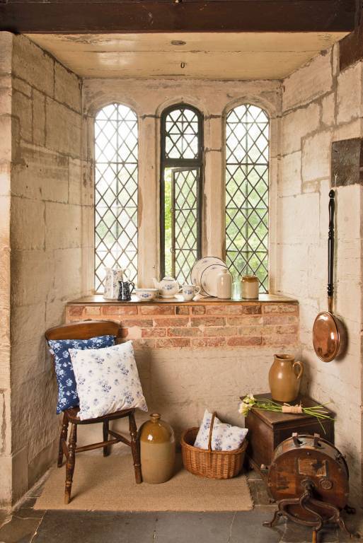 În acest spațiu sunt bine venite aranjamentele de coșuri cu fructe sau flori proaspete ori uscate, sfeșnicele realizate din fier sau obiectele de lemn ori lut.