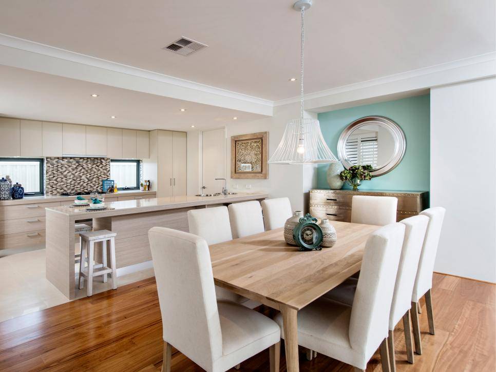 Soluție creativă. Într-o casă nouă, designerul Jodie Cooper a preluat conceptul de iluminare dramatică la noi înălțimi, folosind un “perete etanș” realizat la comandă suspendat din tavan de cromate pentru a lumina bucătăria și zona de luat masa. De asemenea, peretele de compartimentare vă ajută să definiți vizual zona de bucătărie fără a pierde simțul stilului loft”, spune designerul. Și, remarcă ea, “nu avem nevoie de o bucătărie modernă pentru a avea un decor modern. Prin amestecarea unor piese, cum ar fi scaune retro, lucruri antice chinezești și o masă rustică, combinată cu covoare turcești, am creat texturi și straturi, care adaugă un stil Boemian casei pentru a crea ceea ce eu numesc un interior “Global Eclectic”.