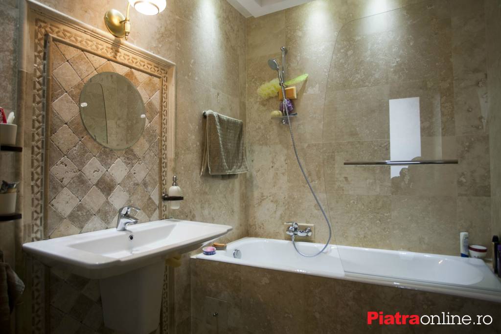 “Totul s-a făcut din imaginația noastră, noi vedeam deja apartamentul cu piatră, încă de când era gol. Mozaicul de pe peretele din living – travertin 3d, a fost dragoste la prima vedere pentru Silviu, mi-a plăcut și mie foarte mult, astfel încât am mers pe intuiția lui” detaliază Diana, proprietara apartamentului amenajat cu travertin.