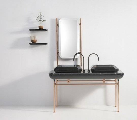 Cu toate acestea nu am rămas insensibilă nici la modelul din beton cu cuvă extrem de adâncă sau la cel din marmură negra, pătrat, așezat pe blatul mobilierului ca o vază într-o cameră de zi.