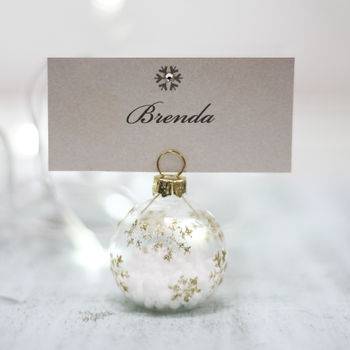 2. Cu toate că poate părea mult prea oficial pentru cât de afectuoși suntem noi români, de dragul amuzamentului poți așeza în dreptul fiecărui scaun un semn cu numele celui ce va sta acolo. Asta dacă intenționezi să faci o masă mare. Poți recurge la câte un cadou efectiv, o mică atenție sub forma unei cutiuțe albe, legată cu fundă roșie, verde sau aurie, în care să introduci câteva bomboane. Acestea le poți alege după preferințele celor apropiați, poți opta pentru bomboane de ciocolată umplute cu lichior sau vișine, ori arahide glazurate sau bomboane cu fulgi de cocoș umplute cu cremă de alune. Pentru cei mici poți alege bomboanele M&M sau jeleurile. Cutiile pot fi doar simbolice, fără niciun conținut, doar o simplă decorațiune de masă în spiritul Crăciunului. De asemenea, pentru că globulețul de brad este un element simbolic, el poate lua locul cadourilor în miniatură.