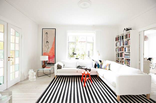 Alege un covor cu dungi verticale şi poziţionează-l pe lungimea camerei petru o a mări vizual camera.
