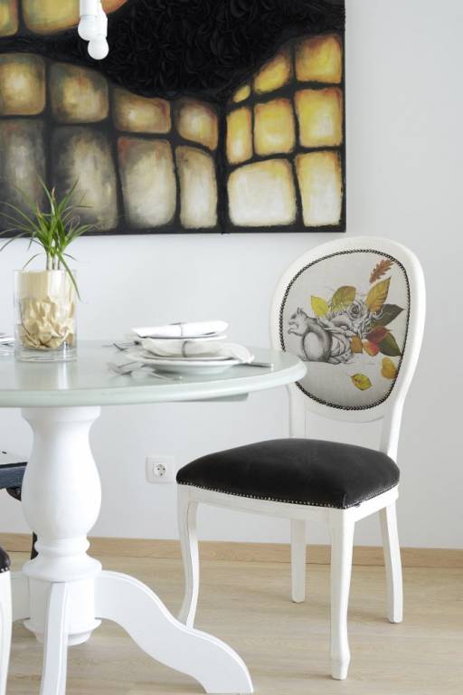 L-am ales pe acesta, un apartament cu 2 camere și o suprafață de 53 mp. Motivul (de fapt sunt două)?, în primul rând pentru că poartă amprenta Irinei Neacșu, un designer de obiect ce a reușit cu multă grație să facă dintr-un scaun o prezență originală, confortabilă, cu identitate proprie.