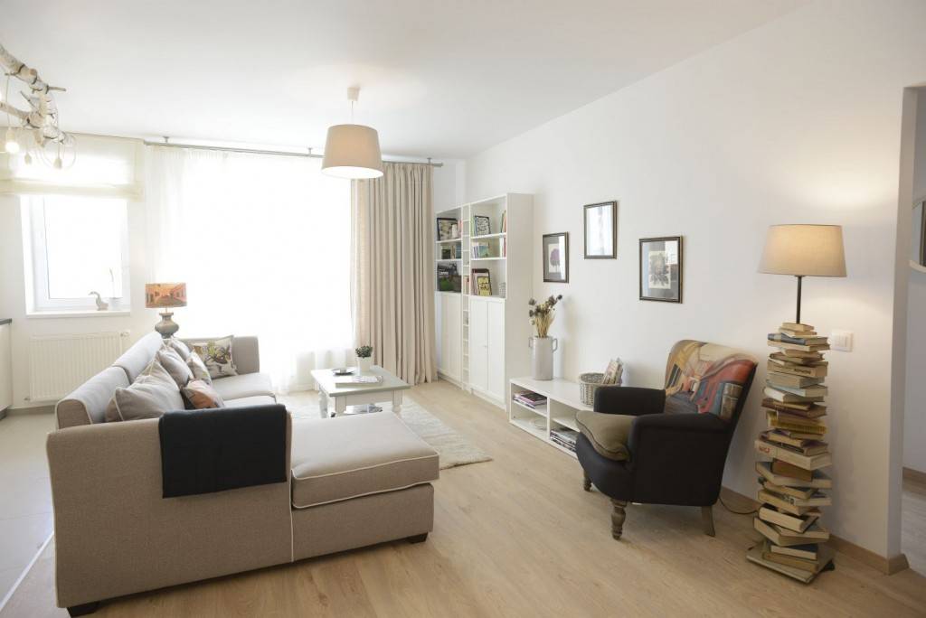 L-am ales pe acesta, un apartament cu 2 camere și o suprafață de 53 mp. Motivul (de fapt sunt două)?, în primul rând pentru că poartă amprenta Irinei Neacșu, un designer de obiect ce a reușit cu multă grație să facă dintr-un scaun o prezență originală, confortabilă, cu identitate proprie.