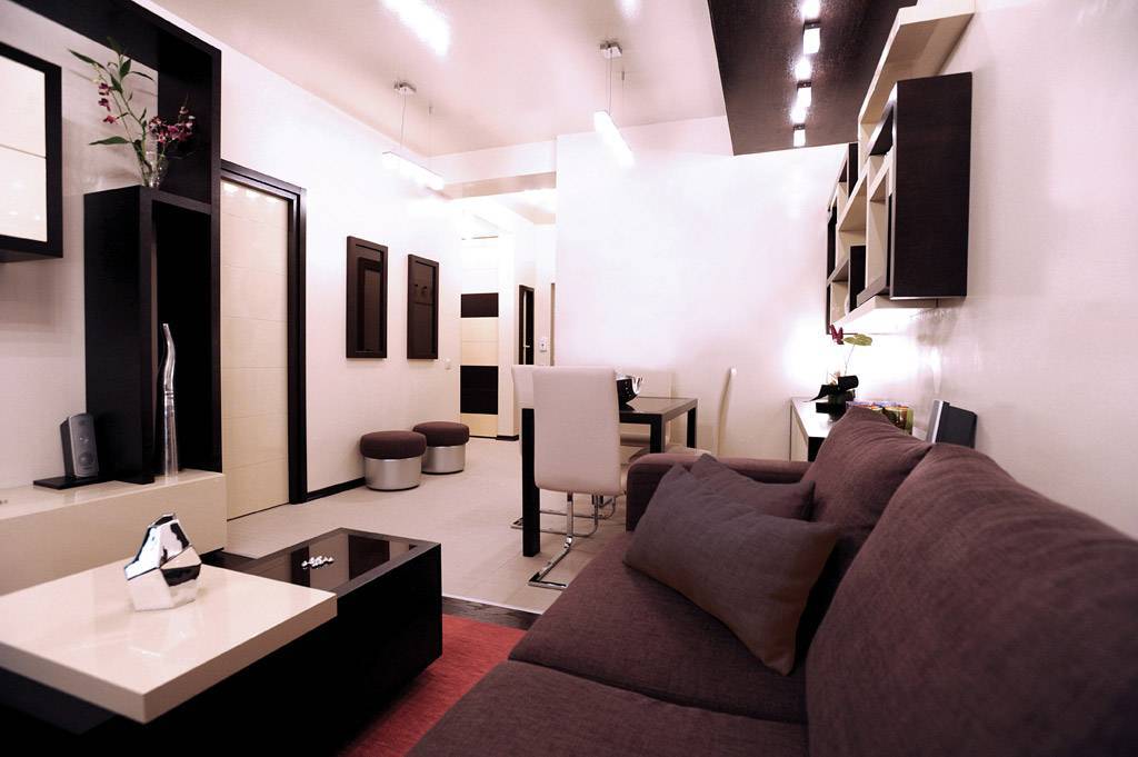 Oana și Lucian au conceput întreaga amenajare plecând de la ideea că prin optimizarea eficientă a interiorului și prin diferite efecte optice va rezulta o locuință care să pară mult mai spațioasă decât este în realitate și să obțină mai multe locuri de depozitare, funcțiuni și zone de interes decât erau prevăzute inițial. Designerii au optat pentru un stil contemporan cu finisaje contrastante și reflexive care să inducă permanent impresia că spațiul se dublează; cu volume și ieșiri în consolă ale mobilei care să creeze un efect panoramic de constantă extindere vizuală a punctelor de atenție.