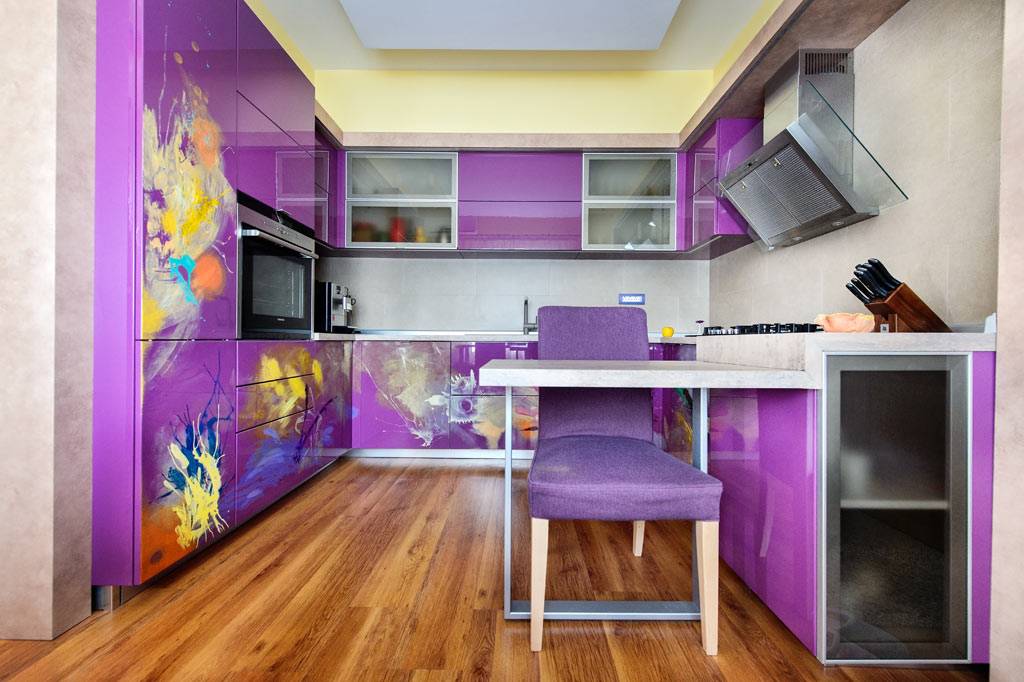 La nivel de interpretare cromatică, se poate vorbi despre o explozie de culoare atât la propriu, cât și la figurat. În atelierul producătorului, mobilierul a fost practic pictat pe MDF, folosind culori care se regăsesc și în celelalte zone ale amenajării sau culori complementare: violet-galben, verde-roșu. Compoziția a fost lucrată la „mână liberă”, folosindu-se de efectele generate de culori și de transparențele acestora. Rezultatul a fost original și pe placul beneficiarilor, care consideră acest spațiu ca fiind locul preferat din casă.