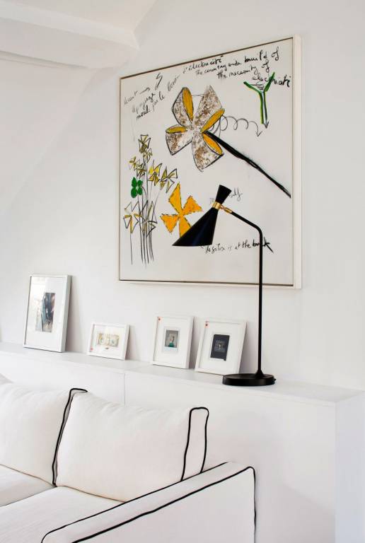 Acest proiect, acest duplex se evidențiază prin mixul echilibrat de alb și negru, de altfel bazele preferate ale autoarei, precum și de accentele de galben muștar și albastru, mov și roșu niște juxtapuneri îndrăznețe, originale.