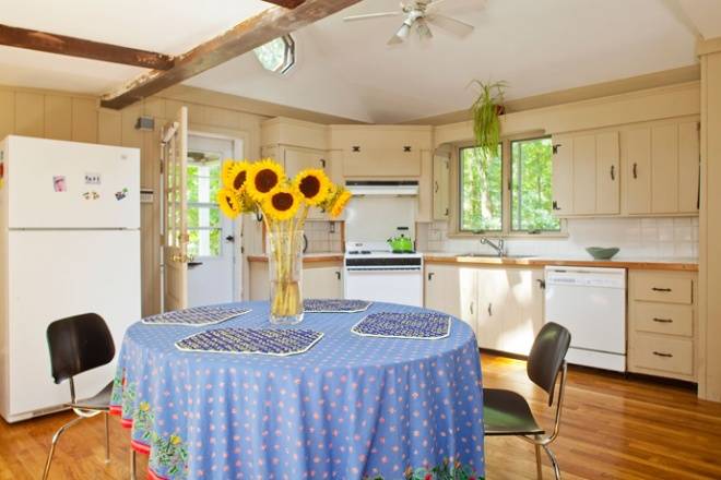 Atinsă de pana invizibilă a timpului, bucătăria a fost amenajată într-un colț, comunicând cu livingul și diningul prin culoarul deschis al cărui avantaj este de a oferi fluiditate spațiului.