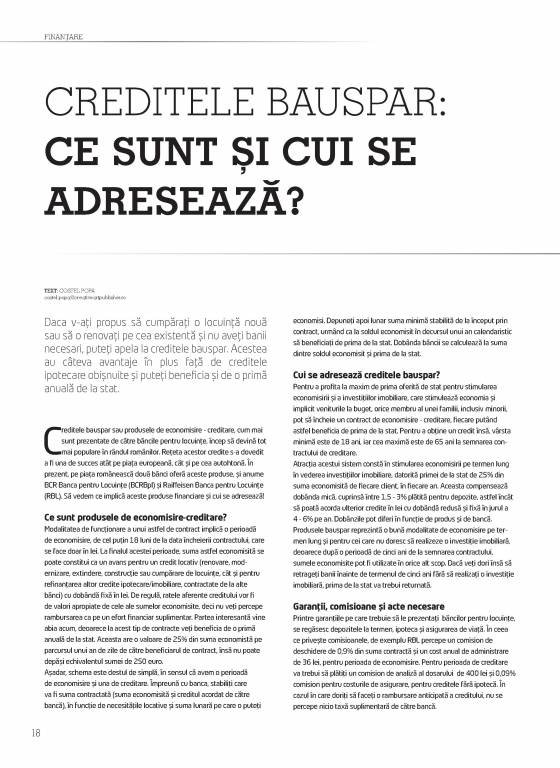 Află tot ceea ce trebuie să știi atunci când cumperi un teren, ce sunt și cui se adresează creditele bauspar, cum să îți construiești casa în 10 pași, care sunt noutățile anului 2015 în materie de design interior, sfaturi de la specialiști în privința trecerii de la un sezon la altul, dar și prezentări inedite de locuințe.