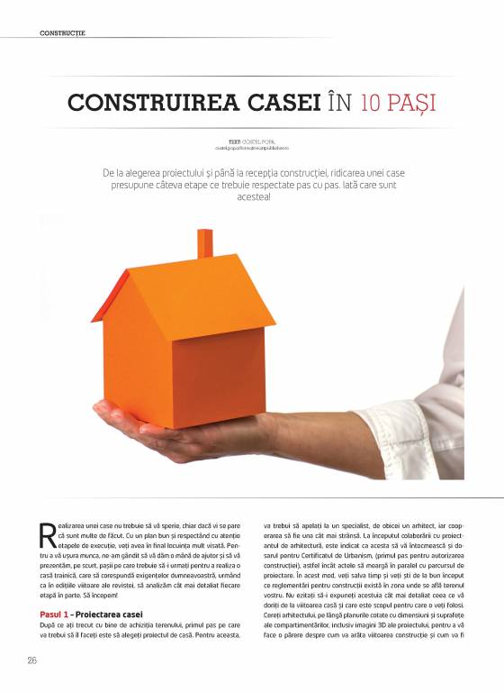 Află tot ceea ce trebuie să știi atunci când cumperi un teren, ce sunt și cui se adresează creditele bauspar, cum să îți construiești casa în 10 pași, care sunt noutățile anului 2015 în materie de design interior, sfaturi de la specialiști în privința trecerii de la un sezon la altul, dar și prezentări inedite de locuințe.